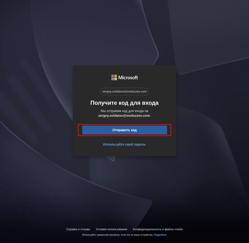 Step 2 After sending the request, you will be redirected to the Your OIDC Provider login page, in my case it’s Microsoft login page. Click Receive Code.